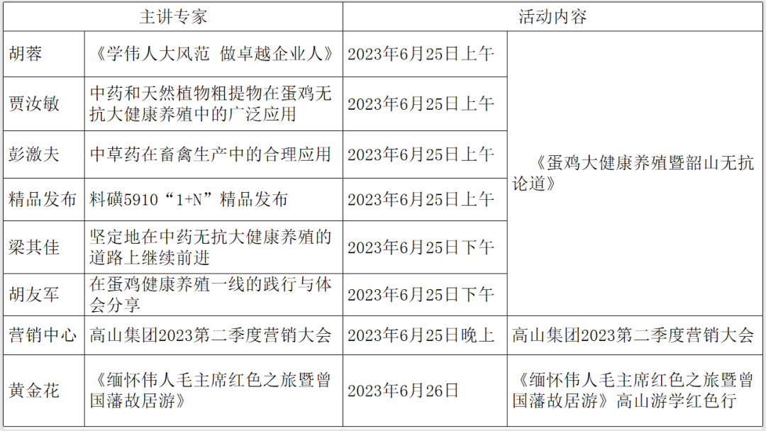 值高山創(chuàng)牌走過37周年,廣東高山動(dòng)物藥業(yè)有限公司暨高山商學(xué)院定于2023年6月25-26日,在湖南省湘潭市韶山市舉辦《蛋雞大健康養(yǎng)殖暨韶山無抗論道》大會(huì)。