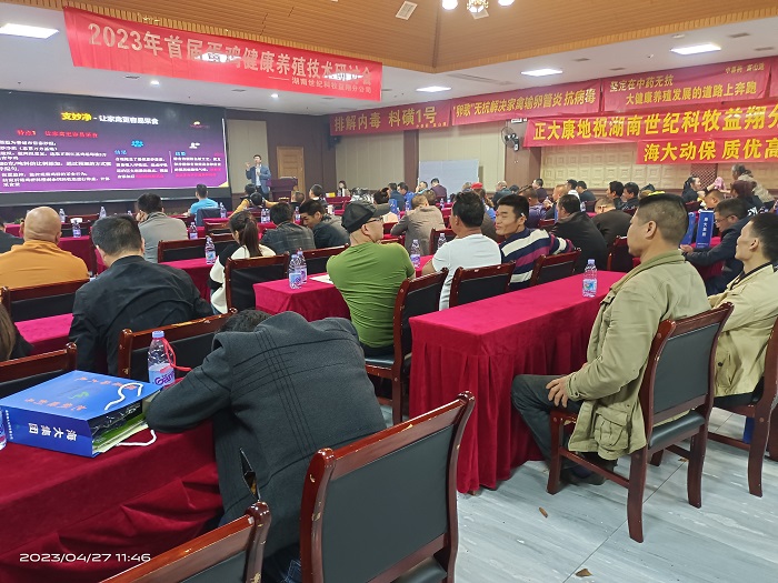 2023年4月27日,《首屆蛋雞健康養(yǎng)殖技術(shù)講座》在湖南世紀(jì)科牧益陽分公司~益翔服務(wù)部高山加盟形象店成功舉辦,永州和益陽加盟形象店的店長及其骨干成員、客戶嘉賓代表等100多人參加會議,高山集團(tuán)營銷總監(jiān)陳翠、副總監(jiān)龍美秀、營銷經(jīng)理黎榮宇及湖南世紀(jì)科牧有限公司總經(jīng)理胡友軍等參加。