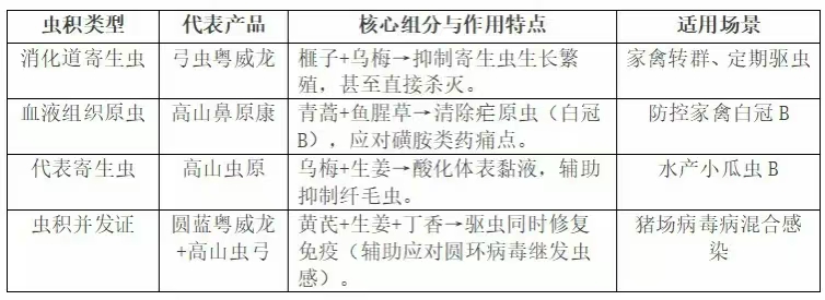 針對(duì)不同蟲體類型和寄生部位,設(shè)計(jì)多層次復(fù)方: