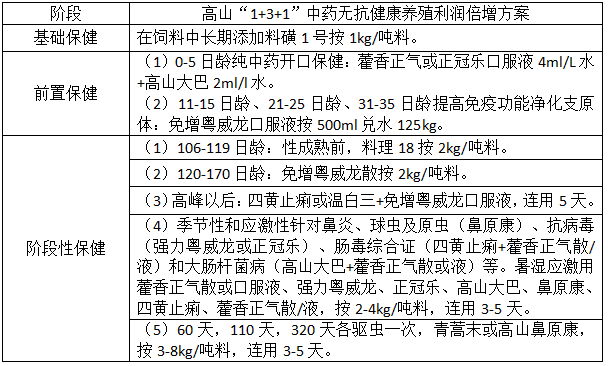 前言:第一、動(dòng)物健康是動(dòng)物(包括種禽)生產(chǎn)性能發(fā)揮的基礎(chǔ)。而系統(tǒng)和科學(xué)的中藥保健是動(dòng)物健康的好抓手。第二、全程中藥無(wú)抗健康養(yǎng)殖是種禽健康生產(chǎn)和生產(chǎn)性能的發(fā)揮。第三、中藥應(yīng)對(duì)種禽鼻炎、白冠病等病原體及蟲(chóng)積頑證的同時(shí),還能恢復(fù)機(jī)體的非特異性免疫功能。第四、結(jié)合種禽的生殖和生理特點(diǎn)給予適當(dāng)?shù)闹兴幑δ鼙=。穷A(yù)防輸卵管炎、發(fā)揮生產(chǎn)性能和降低生產(chǎn)成本的手段。