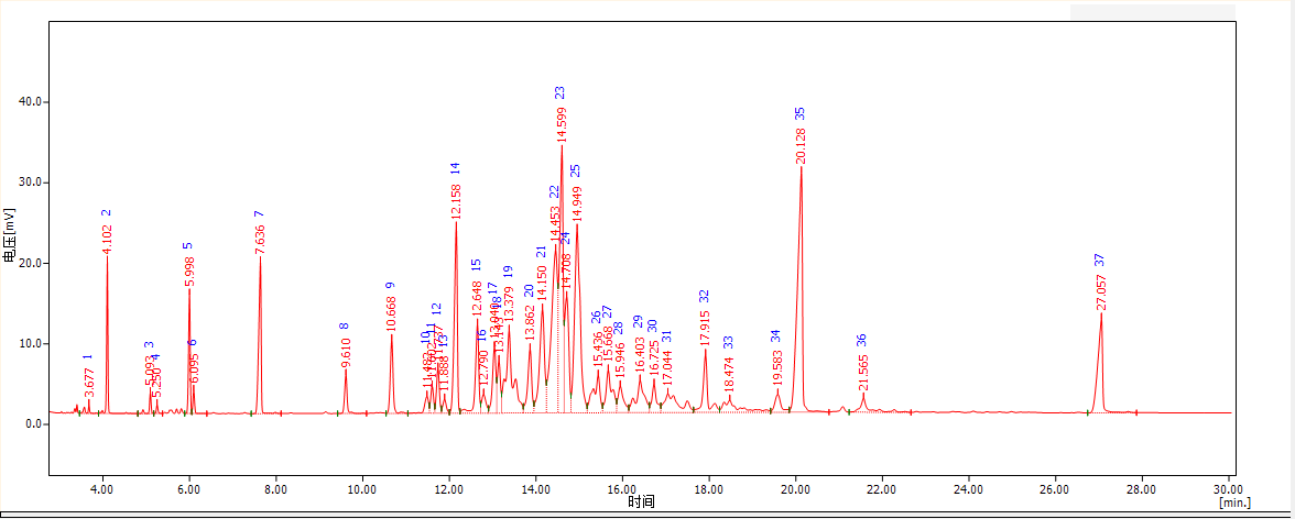 圖2:鮮取工藝藿香揮發(fā)油組分