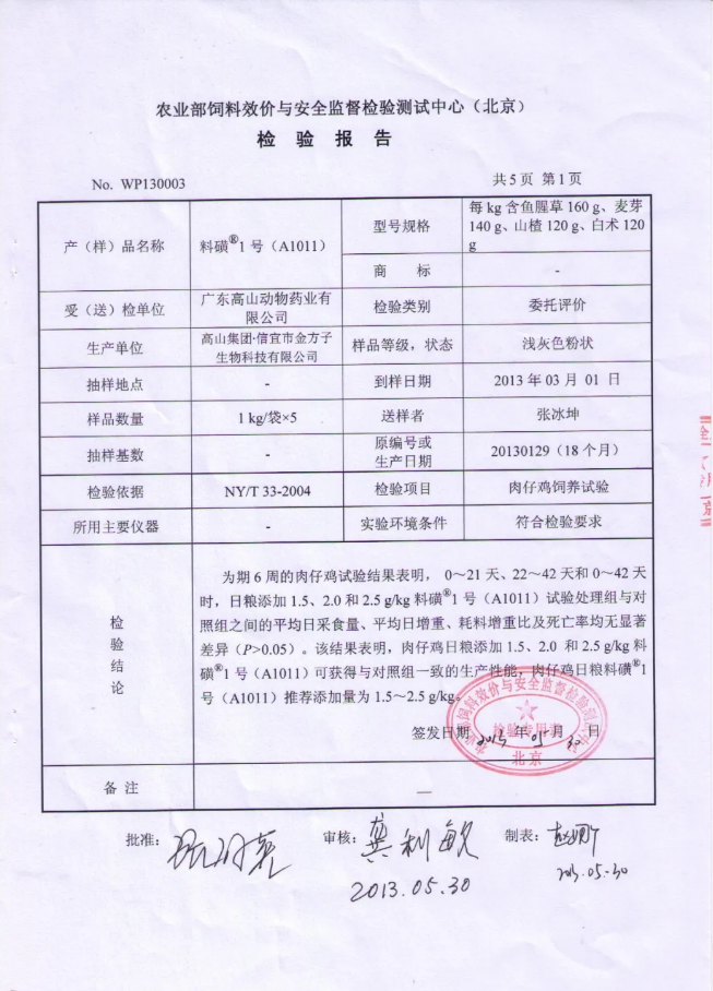 附:國家飼料工業(yè)中心2013年試驗(yàn)報(bào)告
