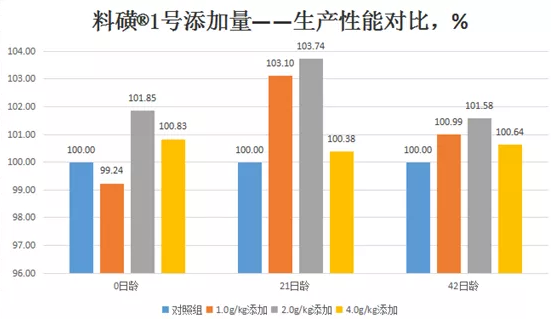 本次試驗(yàn)對料磺1號在肉用雞生產(chǎn)中替抗應(yīng)用的再次驗(yàn)證,其結(jié)果表明,在肉用雞日糧中添加2g/kg的料磺1號,可以不用抗生素、抗球蟲藥、促長劑和脫霉劑等的“替抗”生產(chǎn)效果,幫助提高日增重,降低死亡率。