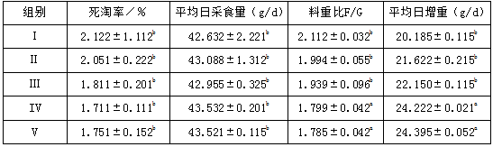 于試驗(yàn)開始時(shí)和試驗(yàn)第25天空腹測(cè)定各組的總體重,記錄每組總耗料量,計(jì)算試驗(yàn)期間每組的平均日增重、平均日采食量、死淘率。