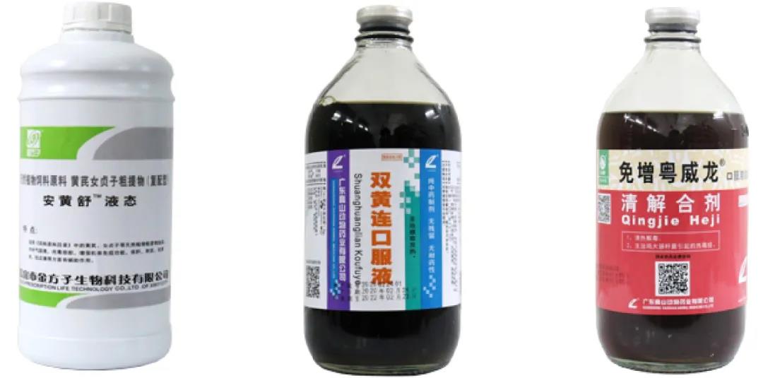 安黃舒口服液+雙黃連口服液+免增粵威龍口服液各4ml/L水,連用5天。(福建客戶分享)