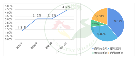 2019-2022年滑液囊支原體在雞群發(fā)病率以及在不同品種發(fā)病比例(摘自網(wǎng)絡(luò)收集)