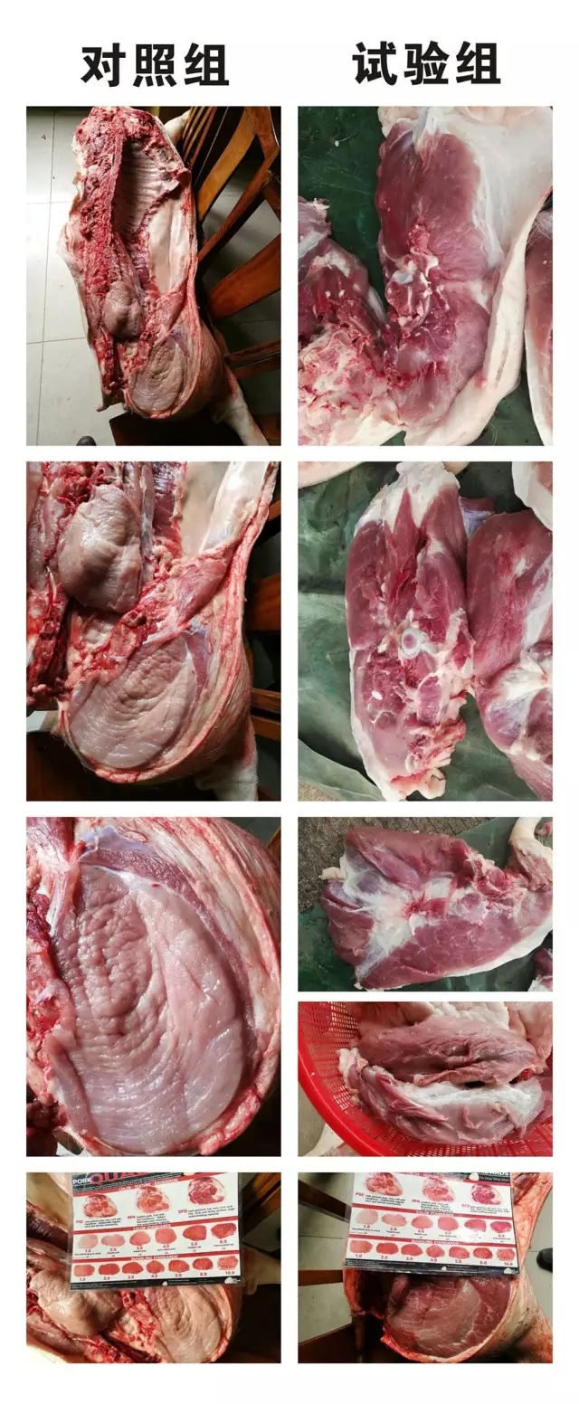 PSE肉(俗稱水豬肉或滲水肉): P代表肉色灰白(蒼白),S代表柔軟,E代表肉的汁液滲出。PSE肉在豬肉中最為常見,識別特征表現(xiàn)出色澤蒼白,質(zhì)地柔軟,肉的表面滲水。出現(xiàn)這種情況的原因是糖原消耗迅速,是豬只在屠宰以后肉的酸度迅速提高(ph值下降)的一種劣質(zhì)肉。有學者說,PSE肉(滲水肉),這是普遍存在的問題,幾乎所有高產(chǎn)養(yǎng)殖和巨型跨國養(yǎng)殖企業(yè)都面對的難題。添加中草藥飼用添加劑,改善肉的品質(zhì)和風味,不失為應(yīng)對PSE肉的一種專有途徑。高山肥大康,幫助增重、改善肉質(zhì),是高山中獸藥30年偉大實踐的又一實證。PSE肉的肉質(zhì)特點,豬在宰后肌肉是蒼白、質(zhì)地松軟沒彈性、并且肌肉表面滲出肉汁,這種豬肉俗稱白肌肉,或“水煮樣”肉。常見于豬腰部及腿部肌肉。這種肉用眼觀察呈淡白色,同周圍肌肉有著明顯區(qū)別;其表面很濕,呈多汁狀;指壓無彈力,呈松軟狀。肥大康純中藥止痢、育肥雙效驅(qū)動,適用于長期和后期的階段性育肥增重。本品由多種維生素和《飼料目錄》中收錄115種天然植物中天然植物粗提物及螯合物組成,是高山八大傳統(tǒng)優(yōu)勢產(chǎn)品王牌之一,又肥,又大,又健康,是傳統(tǒng)中藥中久負盛名的純中藥出欄前增重增益提高產(chǎn)肉水平的產(chǎn)品。在生產(chǎn)秉承了高山三十年的復(fù)合鮮取與循環(huán)倍增工藝專利技術(shù),采用了“配方獨特,選料上乘”的“多種維生素+傳統(tǒng)中藥”的高山特色配伍,體現(xiàn)了“尚本草,保健康;品質(zhì)優(yōu),價值高”的高山特點,具有增重和防瀉雙效驅(qū)動,改善肉質(zhì)PSE肉(滲水肉問題)等特點,幫助提升養(yǎng)豬效益,利潤增多。增強食欲和采食量,促進消化吸收,提高飼料轉(zhuǎn)化率。血氣旺盛,皮毛光亮,豬看相好。肥大康產(chǎn)品作用特點:⊙輔助作用:清開解毒,清腸開胃,調(diào)節(jié)平衡,防止豬腹瀉,改善糞便,減少疾病發(fā)生;⊙補充內(nèi)源性酶和維生素,平衡消化吸收功能,提高飼料轉(zhuǎn)化率和肉料比;⊙出欄前的增重育肥,提前出欄日齡;⊙作為輔助給藥時的病后康復(fù)用藥伴侶,能增強免疫功能,提高抗病能力。用戶反饋使用肥大康15天左右效果:用戶反饋使用肥大康一個月后的效果:使用肥大康后現(xiàn)場殺豬比品質(zhì):