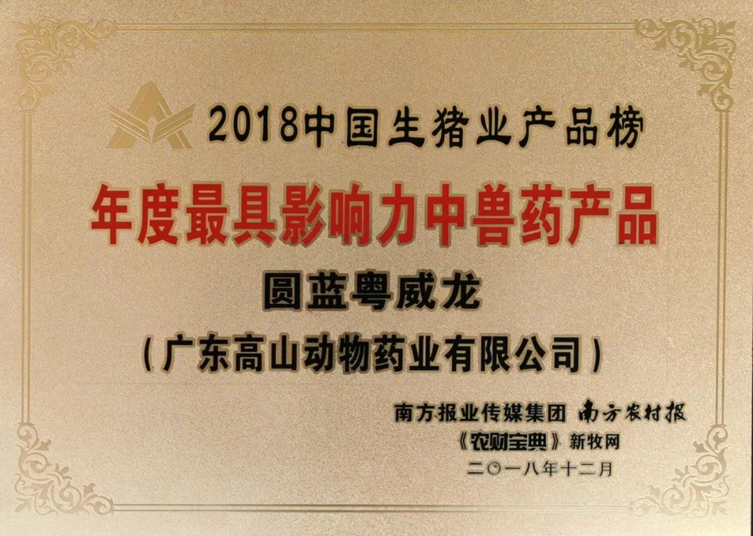 圓藍(lán)粵威龍,是由廣東高山動(dòng)物藥業(yè)有限公司獨(dú)家生產(chǎn)的新一代獸用全效型抗病毒純中藥產(chǎn)品,曾在2018年廣州盛大舉行的南方報(bào)業(yè)傳媒集團(tuán)主辦的中國生豬業(yè)風(fēng)云榜中獲得過《年度最具有影響力中獸藥產(chǎn)品》稱號(hào),問世多年,一直都是廣大養(yǎng)豬人心目中豬群保健的強(qiáng)力武器,無論是母豬、小豬、中豬、大豬,都用上圓藍(lán)粵威龍。