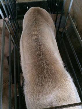 三、跟蹤反饋:連續(xù)使用一星期后,皮毛明顯改善,黑斑有去掉,同時再用圓藍粵威龍不間斷使用,一星期后看不到黑斑,母豬皮毛紅亮、健康度提高、老板對圓藍粵威龍和弓蟲粵威龍效果非常認可。