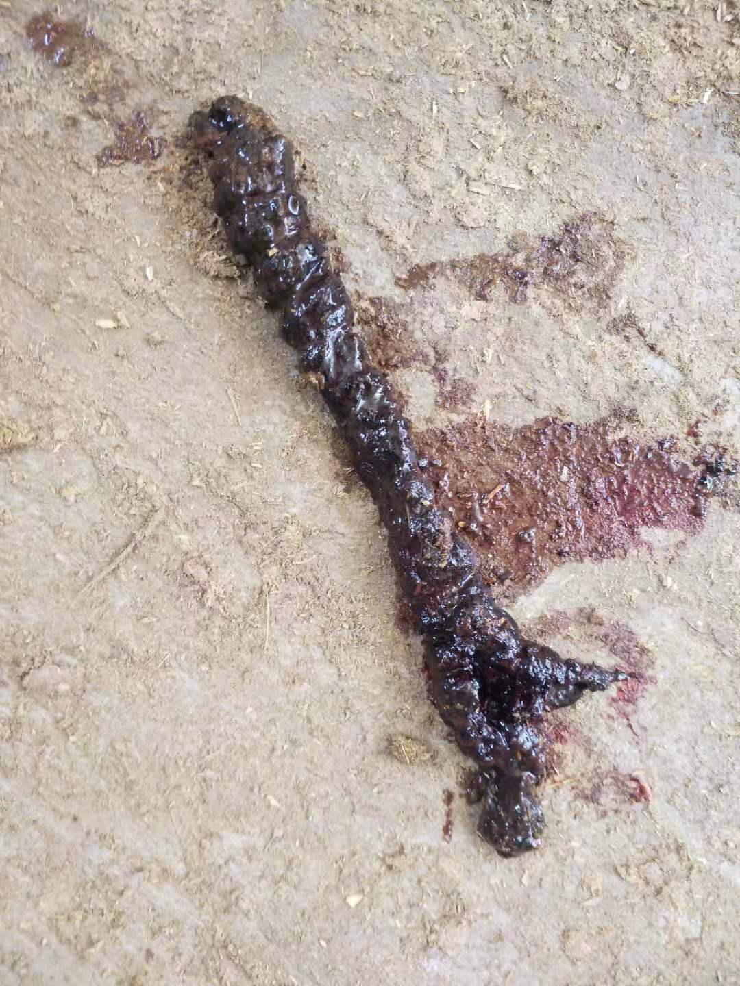 每天灌腸三次。四天后,無血塊排出,大便正常,牛有食欲,反芻正常,已恢復(fù)正常。