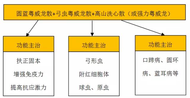二、針對畜抗病毒性疫證,如口蹄病、豬瘟、偽狂犬、圓環(huán)病和藍(lán)耳病等緊急黃金方案組合。