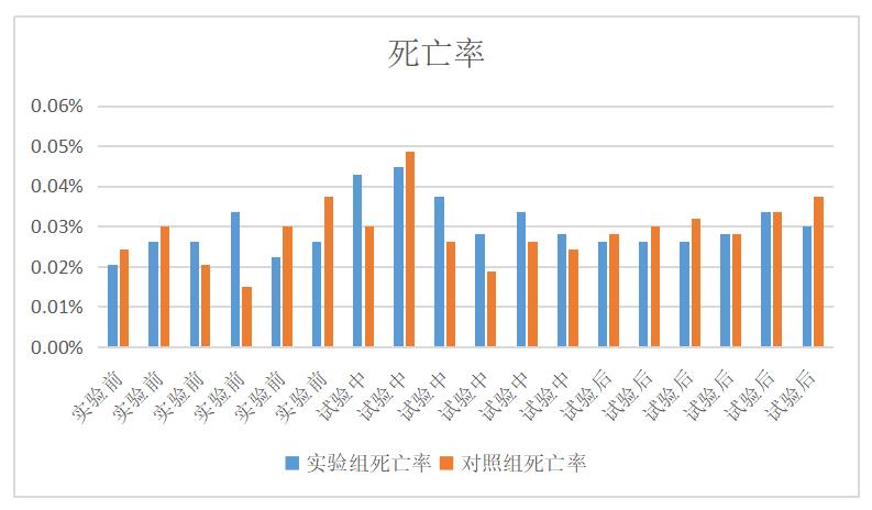 從上圖中可以看出,試驗中,對照組死亡率相對較小。
