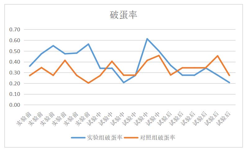2、試驗組破蛋率下降幅度明顯低于對照組(同比下降了39.6%);