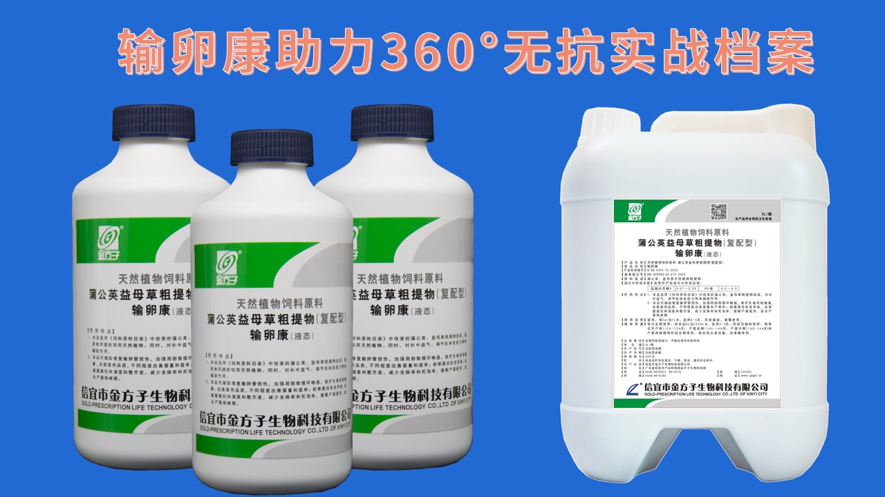 輸卵康助力360°無抗實(shí)戰(zhàn)應(yīng)用:高山輸卵康500ml/5L兩款包裝,是一款專為應(yīng)對蛋禽輸卵管的抗生素問題而研發(fā)的產(chǎn)品,主要成分是益母草、蒲公英、黃芪等,助力于減輕輸卵管炎癥、助力于卵泡生成和發(fā)育,助力于恢復(fù)輸卵管損傷、應(yīng)對不用抗菌產(chǎn)品問題等特點(diǎn)。