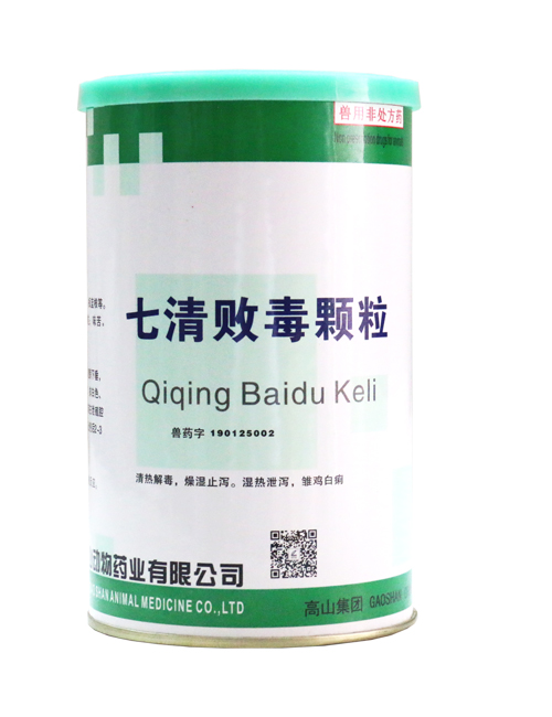 通用名稱:七清敗毒顆粒【主要成分】黃芩、虎杖、白頭翁、苦參、板藍根等。【性狀】本品為黃棕色至棕褐色顆粒;味苦。【功能】清熱解毒,燥濕止瀉。【主治】濕熱泄瀉,雛雞白痢。證見發(fā)熱怕冷、精神沉郁,翅膀下垂,食欲減少或廢絕,口渴多飲,排白色、淡黃或淡綠色稀糞,糞便粘連在泄殖腔周圍。張口呼吸,死亡多在出殼后2-3周,3周齡以上者較少死亡。【用法與用量】混飲:每1L水,禽2.5g。【不良反應】按規(guī)定劑量使用,暫未見不良反應。【注意事項】暫無規(guī)定。【包裝規(guī)格】200g*30罐/件